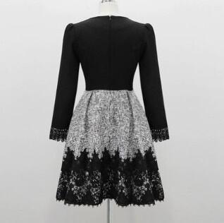 袖口レースワンピース 2ピース風 入学式 卒業式 謝恩会 フェミニン バイカラー レース柄スカート かわいい 結婚式二次会 お呼ばれ 2018年新作 婚活パーティー フォーマルドレス 披露宴