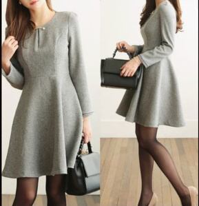 フレアワンピース シンプル&クラシカル 袖口ステッチ パール 結婚式二次会 お呼ばれ 2018年新作 婚活パーティー フォーマルドレス 披露宴 入学式 卒業式 謝恩会 通勤