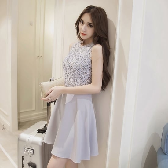 お洒落なレーストップスが魅力のフレアースカートドレス☆