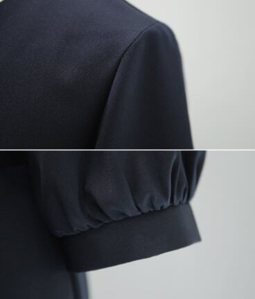 パフスリーブ&ウエストリボンスタイルが、女性らしい雰囲気のワンピース。