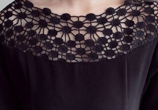 胸元と袖先の透け感刺繍デザインがフェミニンなフレアワンピースです。