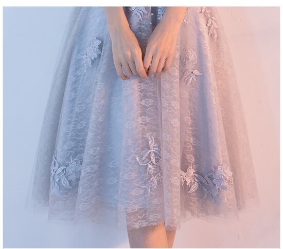 ワンピース ひざ丈 レディース ドレス レース 花柄 リボンベルト シースルー パーティー 可愛い 上品 エレガント グレー シャンパン 結婚式二次会 お呼ばれ 2018年新作 婚活パーティー フォーマルドレス 披露宴 結婚式ドレス ウェディング 演奏会