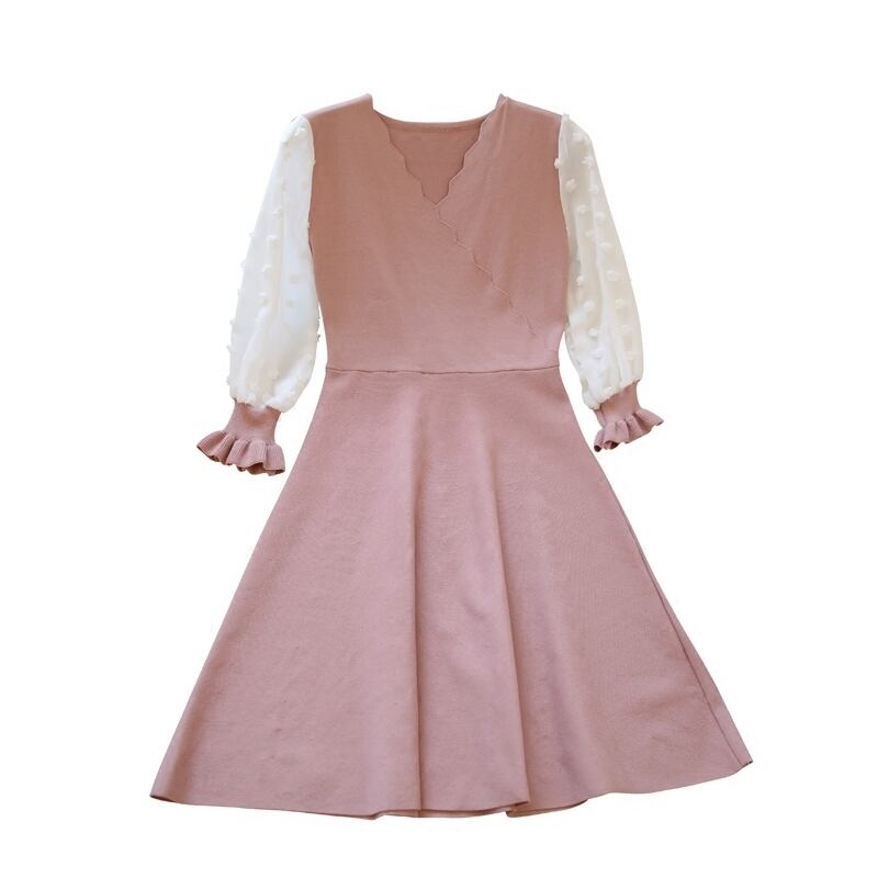 シフォンを切り替えたひざ丈のフレアワンピースが登場しました☆