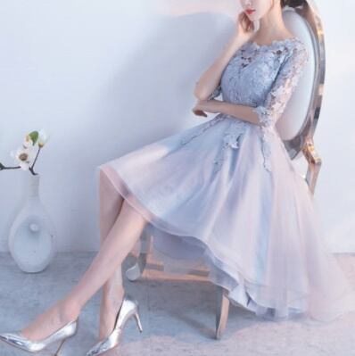 パーティードレス 花柄 レース 刺繍 オーガンジー テールカット 3色 エレガント フェミニン 結婚式二次会 お呼ばれ 2018年新作 婚活パーティー フォーマルドレス 披露宴 結婚式ドレス ウェディング 謝恩会 演奏会