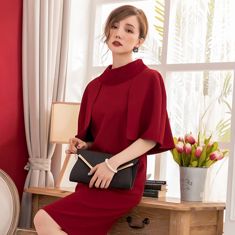 およばれシーンに最適なハイネックとケープスリーブがポイント♪