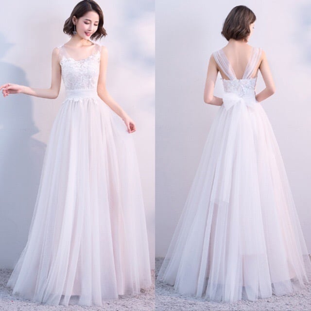 パーティードレス ロング 花柄 レース Uネック リボン チュール 異素材ミックス ノースリーブ エレガント ドレス 結婚式 二次会 パーティードレス お呼ばれ ワンピース フォーマル 2018年新作 婚活パーティー 披露宴 ウェディング 演奏会