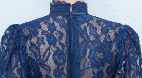イブニングドレス パーティードレス ネイビー ロング丈 ミモレ丈 フレア Aライン 総レース ハイネック 透け感 フレア袖 ウエストリボン スカラップ エレガント 結婚式 二次会 お呼ばれ ワンピース フォーマル 2018年新作 婚活パーティー 披露宴 ウェディング 謝恩会 入学式 演奏会