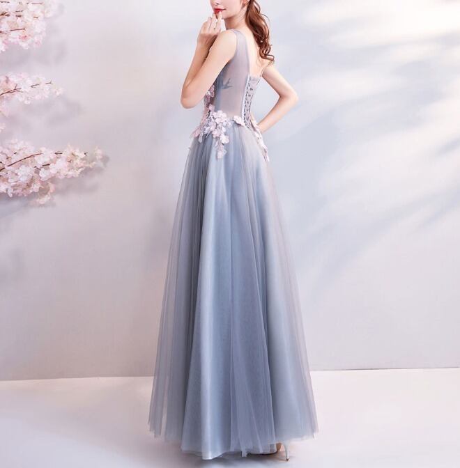 パーティードレス 花柄 刺繍 ロング丈 マキシ丈 フレア チュール Vネック ノースリーブ 華やか きれい エレガント フェミニン 結婚式 二次会 お呼ばれ ワンピース フォーマル 2018年新作 婚活パーティー 披露宴 ウェディング 演奏会