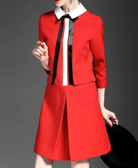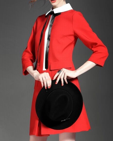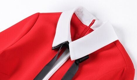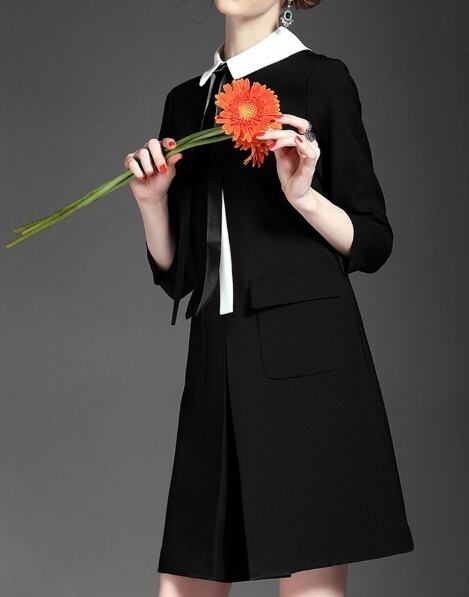 パーティーワンピース 可愛い リボン 七分袖 3色 ミニ丈 シャツカラー ポケット レトロ フェミニン クラシカル パーティー 結婚式 二次会 お呼ばれ ワンピース フォーマル 2018年新作 婚活パーティー 披露宴 ウェディング 謝恩会 入学式
