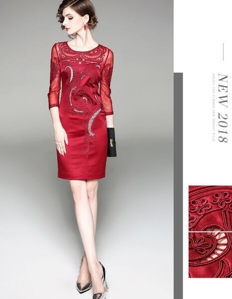 パーティードレス スリム 刺繍 七分袖 ボタニカル柄 タイト 膝上丈 ショート丈 2色 ボートネック フェミニン エレガント パーティー 結婚式 二次会 お呼ばれ ワンピース フォーマル 2018年新作 婚活パーティー 披露宴 ウェディング 謝恩会 入学式