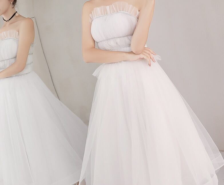 パーティードレス 可愛い ベアトップ 5色 ノースリーブ フリル ミモレ丈 膝下丈 チュール Aライン ギャザー キュート エレガント パーティー 結婚式 二次会 お呼ばれ ワンピース フォーマル 2018年新作 婚活パーティー 披露宴 ウェディング 演奏会