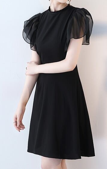 パーティードレス パフスリーブ クルーネック 膝丈 Aライン 無地 シック エレガント パーティー 結婚式 二次会 お呼ばれ ワンピース フォーマル 2018年新作 婚活パーティー 披露宴 ウェディング 謝恩会 入学式 演奏会