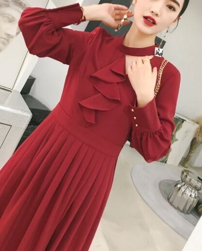 パーティードレス エレガント 非対称 Aライン2色 ミモレ丈 フリル ホルターネック 無地 長袖 エレガント パーティー 結婚式 二次会 お呼ばれ ワンピース フォーマル 2018年新作 婚活パーティー 披露宴 ウェディング 謝恩会 入学式 演奏会