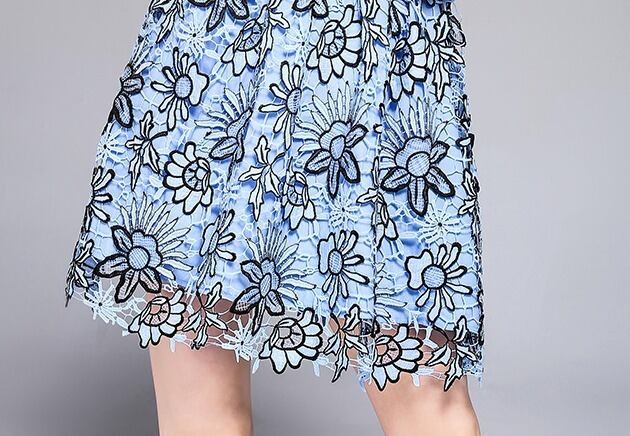 パーティードレス 花柄レース ノースリーブ クルーネック ミニ丈 フレア エレガント 華やか パーティー 結婚式 二次会 お呼ばれ ワンピース フォーマル 2018年新作 婚活パーティー 披露宴 ウェディング 謝恩会 入学式 演奏会