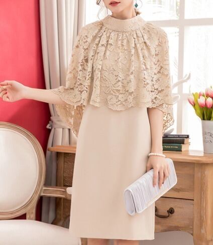 パーティードレス レース 花柄 ケープ風 6色 膝丈 フレア フリル タイト スリット エレガント パーティー 結婚式 二次会 お呼ばれ ワンピース フォーマル 2018年新作 婚活パーティー 披露宴 ウェディング 謝恩会 入学式