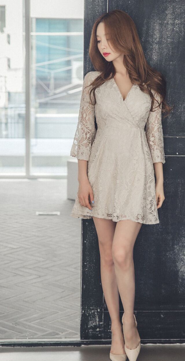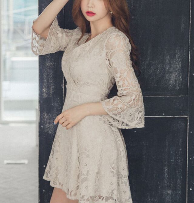ミニ丈 総レース Vネック カシュクール ミニドレス ベージュ パーティドレス ヌーディカラー シンプル ワンカラー レディース 2018年新作 定番 人気 およばれ 結婚式 二次会 演奏会 観劇 謝恩会 発表会 パーティー ドレス