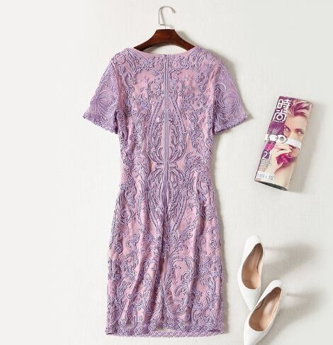 パーティードレス 立体感 刺繍 半袖 2色 レース ボートネック ミニ丈 膝上丈 タイト フェミニン エレガント パーティー 結婚式 二次会 お呼ばれ ワンピース フォーマル 2018年新作 婚活パーティー 披露宴 ウェディング 謝恩会 入学式 女子会