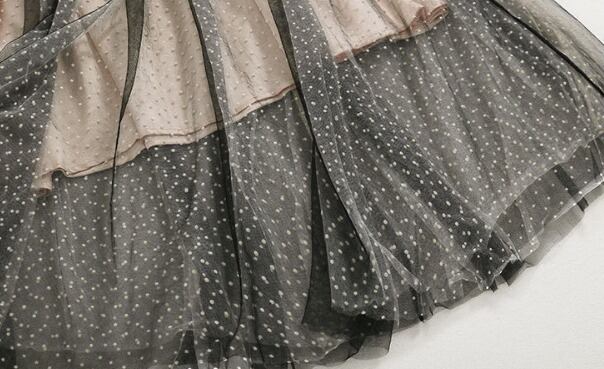パーティードレス Aライン 半袖 バイカラー ミモレ丈 ミディ丈 モノトーン チュール ドット エレガント フェミニン パーティー 結婚式 二次会 お呼ばれ ワンピース フォーマル 2018年新作 婚活パーティー 披露宴 ウェディング 謝恩会 入学式 演奏会