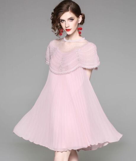 パーティードレス フレア ビジューワンピース プリーツ クルーネック 半袖 ミニ丈 スカラップ 透け感 エレガント パーティー 結婚式 二次会 お呼ばれ ワンピース フォーマル 2018年新作 婚活パーティー 披露宴 ウェディング 謝恩会 入学式 演奏会