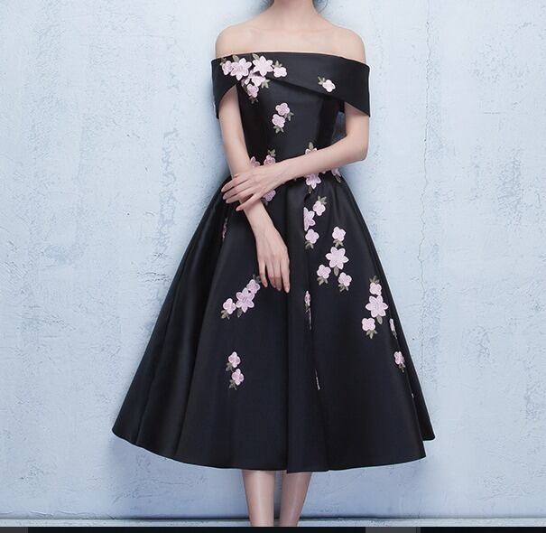 パーティードレス 可愛い 花柄 オフショルダー 4色 フレア Aライン ミモレ丈 ロング丈 フェミニン エレガント パーティー 結婚式 二次会 お呼ばれ ワンピース フォーマル 2018年新作 婚活パーティー 披露宴 ウェディング 謝恩会 入学式 演奏会