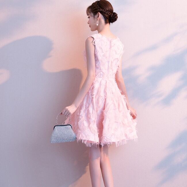 パーティードレス ノースリーブ 2色 フリンジ フェザー風 ミニ丈 ショート フレア Aライン 可愛い フェミニン エレガント パーティー 女子会 結婚式 二次会 お呼ばれ ワンピース フォーマル 2018年新作 婚活パーティー 披露宴 ウェディング 演奏会