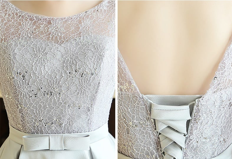 パーティードレス レース リボン ボートネック フレンチスリーブ ミニ丈 ショート フレア Aライン ウエストマーク 異素材ミックス 4色 エレガント フェミニン パーティー 女子会 結婚式 二次会 お呼ばれ ワンピース フォーマル 2018年新作 婚活パーティー 披露宴 ウェディング 謝恩会 演奏会