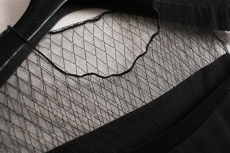 ミディアムドレス 半袖 オープンショルダー クルーネック レース 透け感 ミモレ丈 ウエストリボン ウエストマーク Aライン バイカラー エレガント